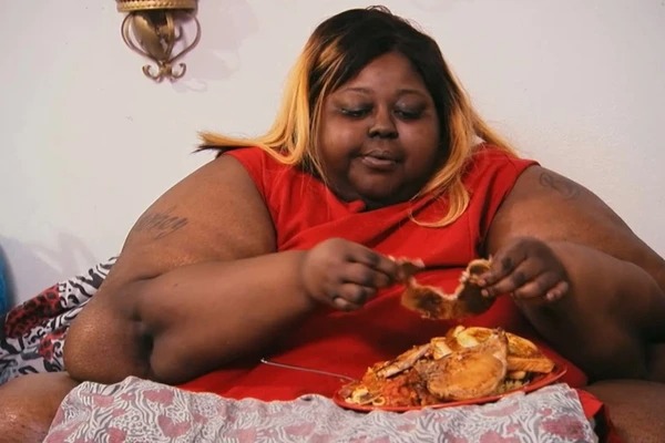 Com apenas 1,56m de altura, LaShanta chegou a pesar 300 kg e passou dois anos completamente acamada, dependendo dos filhos e do então namorado para sobreviver.